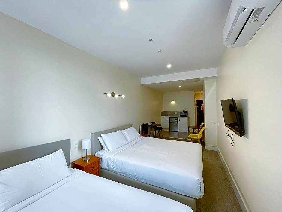 Payment is simple with Cash, Mastercard, American Express, Visa, and Eftpos accepted. Parking is available on-site for an extra charge, and a variety of room configurations can accommodate different group sizes, including options like Deluxe with King and Kitchenette, Deluxe King, Studio King, Standard Twin, Standard King, Deluxe Twin, and a Suite that accommodates up to 8 adults and 5 children.